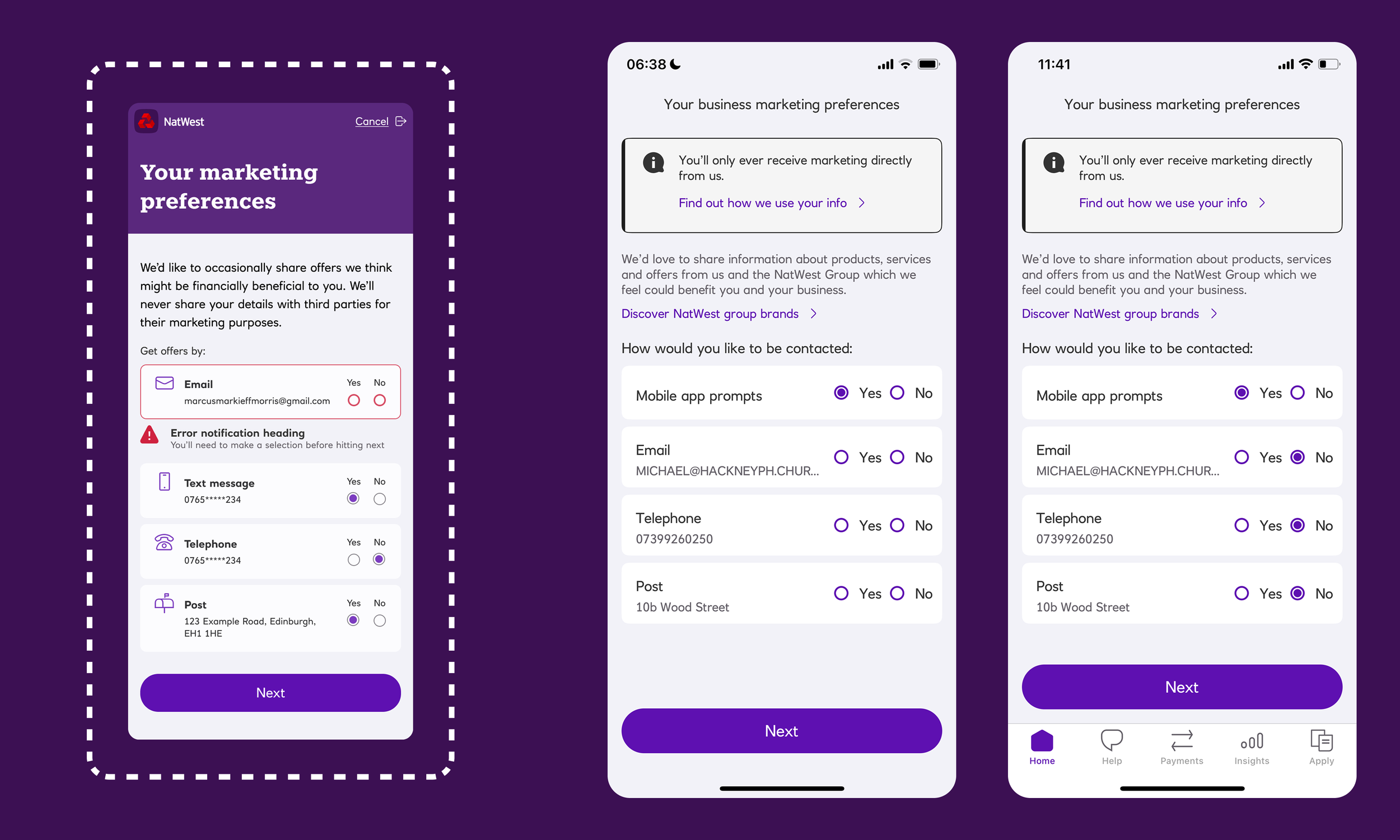 Running qual and quant in sequence — each informing the other — turned a compliance deliverable into a proper evidence base. The redesigned marketing preferences screen is now live in the NatWest mobile app.